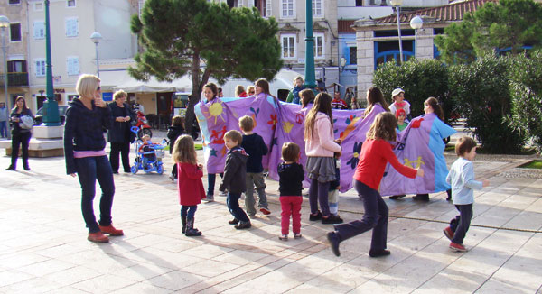 Obilježavanju Dana dječjih prava je prethodio niz pripremnih radionica, na kojima su djeca pod vodstvom učiteljice Jasenke Kojadin proizvela stotinjak veselih i kreativnih oznaka za bilježenje stranica u knjizi - bookmarka - s porukama o dječjim pravima, učeći i sami o dječjim pravima i provodeći slobodno vrijeme na osmišljen, kreativan i poticajan način. Ove su poruke djeca podijelila na događanju na glavnom gradskom trgu, vijugajući trgom i rivom kao vesela šarena gusjenica sa slikovnim porukama o tome što djeci treba - mir, pažnja, nenasilje, prirodni okoliš.